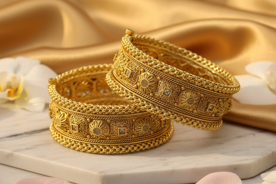2 Pc Rajwadi Antique Gold Plated Bangles | Ruby Stone Kangan Set SA jewelry pk